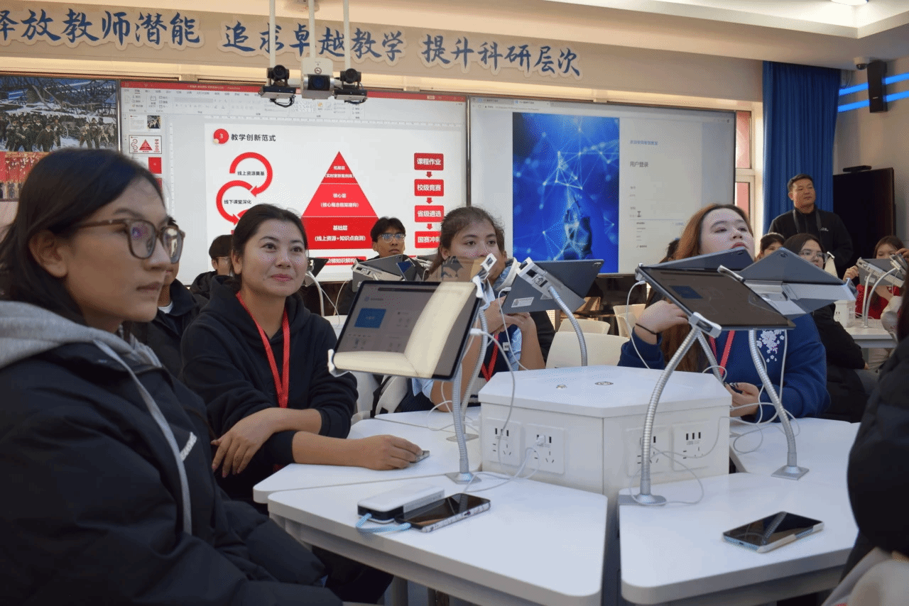 座谈会后,新疆和田学院师生一行参观了首经贸校史馆、“数字马院”与智慧教室。在校史馆,师生通过珍贵的历史影像与实物展陈,全面了解了学校的发展历程、办学理念与突出成就,特别是在服务国家战略和首都发展方面作出的贡献。在“数字马院”,大家亲身体验了数字资源平台带来的教学便捷与沉浸感,感受跨时空教学资源的整合力量。在智慧教室,师生现场观摩了信息技术与课程的深度融合,感受了课堂互动、实时投屏等创新手段为教学带来的全新活力。