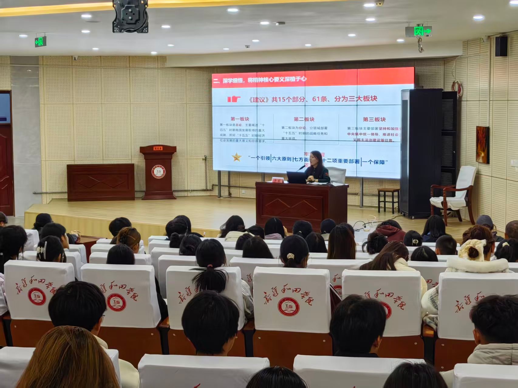 其次,李娇老师从党的二十届四中全会的重大意义、“十五五”时期经济社会发展的重大意义和总体要求、“十五五”时期的战略任务和重大举措三个维度对党的二十届四中全会精神进行了系统的解读,为我院学生全面理解学习党的二十届四中全会精神提供了有力引导。