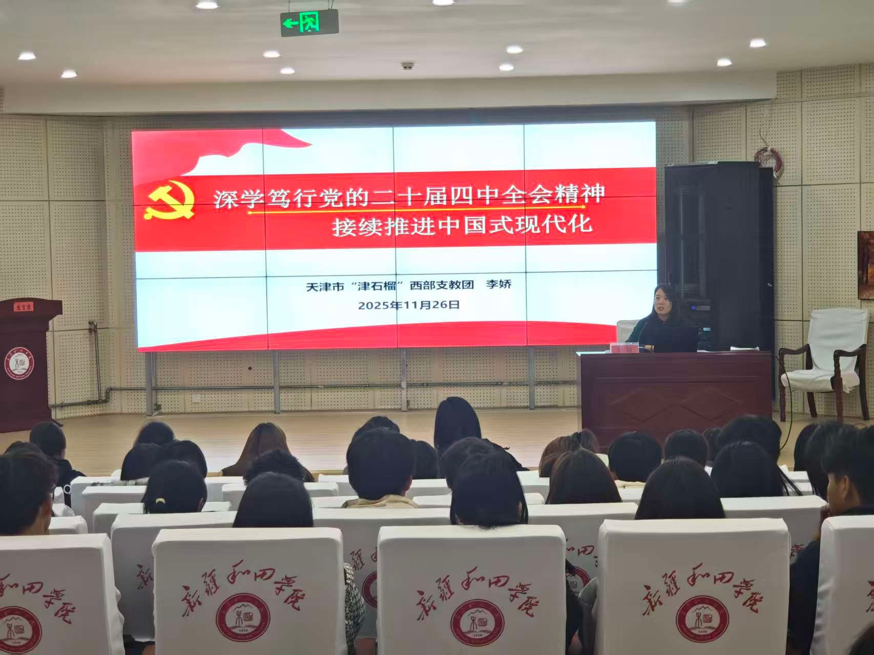 为推动党的二十届四中全会精神入脑入心、落地生根,11月26日下午,马克思主义学院在明德楼二楼中心会议室举办“深学笃行党的二十届四中全会精神 接续推进中国式现代化”专题讲座。本次讲座由天津市“津石榴”西部支教团成员李娇老师主讲,马克思主义学院师生代表齐聚一堂,共同接受思想洗礼、凝聚奋进力量。