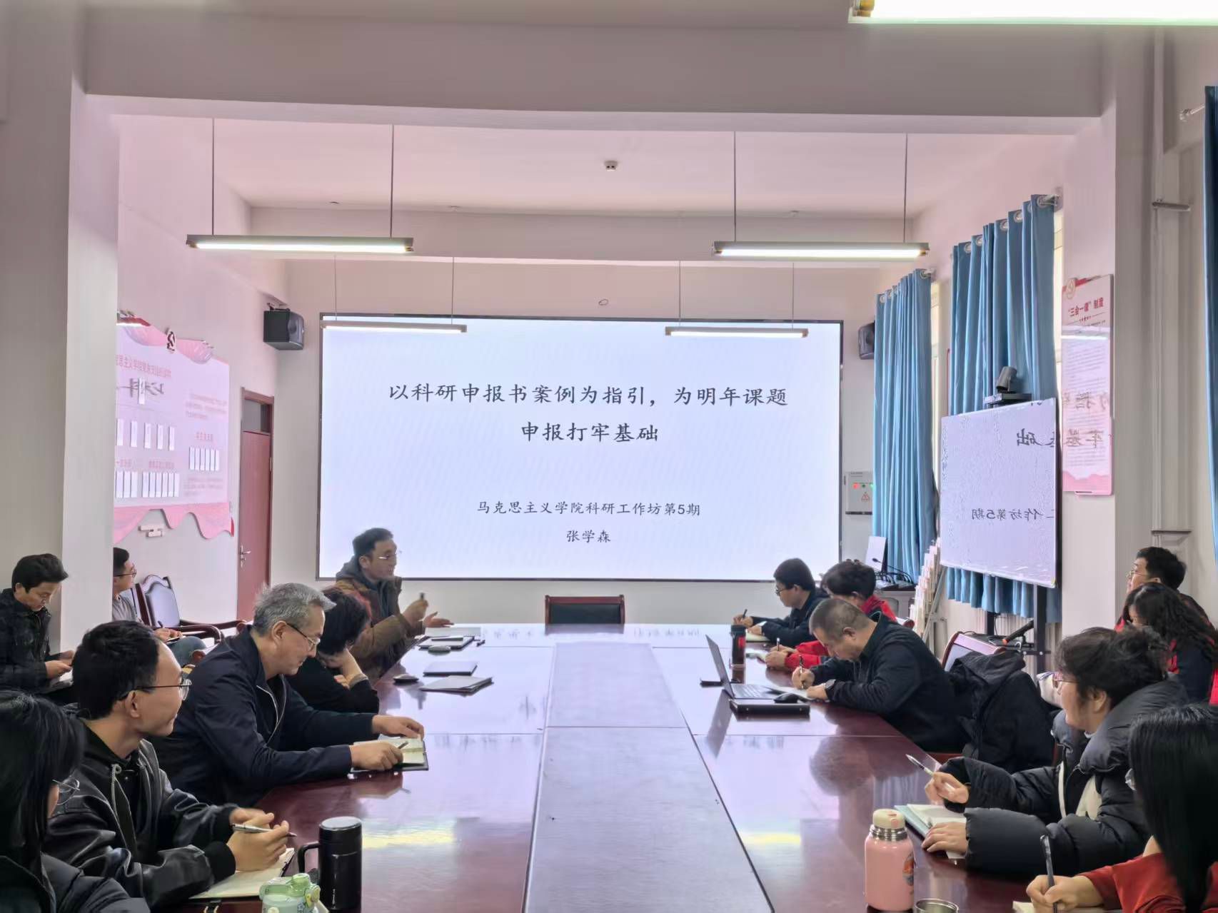 12月24日,新疆和田学院马克思主义学院科研工作坊第五期开讲,学院副院长张学森作了题为“以科研申报书案例为指引,为明年课题申报打牢基础”的专题讲座。院领导班子成员、天津第五批“金石榴”西部支教团部分支教教师、部分北疆支教教师及全体专任教师共同参与。讲座旨在精准助力教师破解课题申报难题,为2026年度科研课题申报工作筑牢根基。